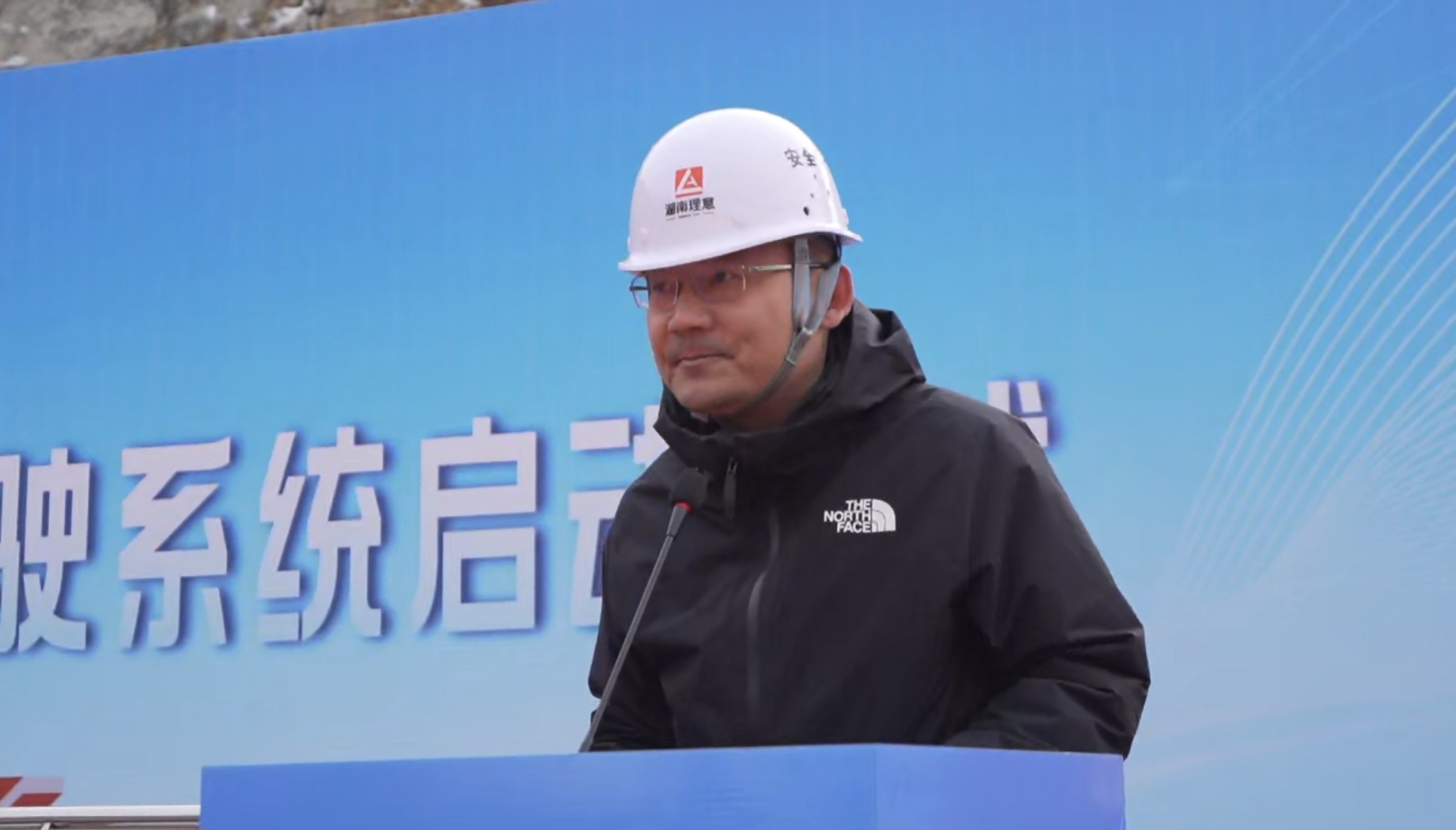 启动仪式上,湖南铁军工程建设有限公司陈学立总经理发表致辞。他首先向顶着风雪严寒到场的领导、嘉宾与同事们表示诚挚感谢,对湖南理意的信任支持、希迪智驾的技术赋能、同力重工的产品保障,以及项目部全体同事的辛勤付出致以敬意。“自联调以来,我们的无人驾驶车队已经运行2750小时,运输矿石5464车,共计38.3万吨,整体运行流畅平稳。”陈总用实打实的数据,展现了项目前期筹备的扎实成效。